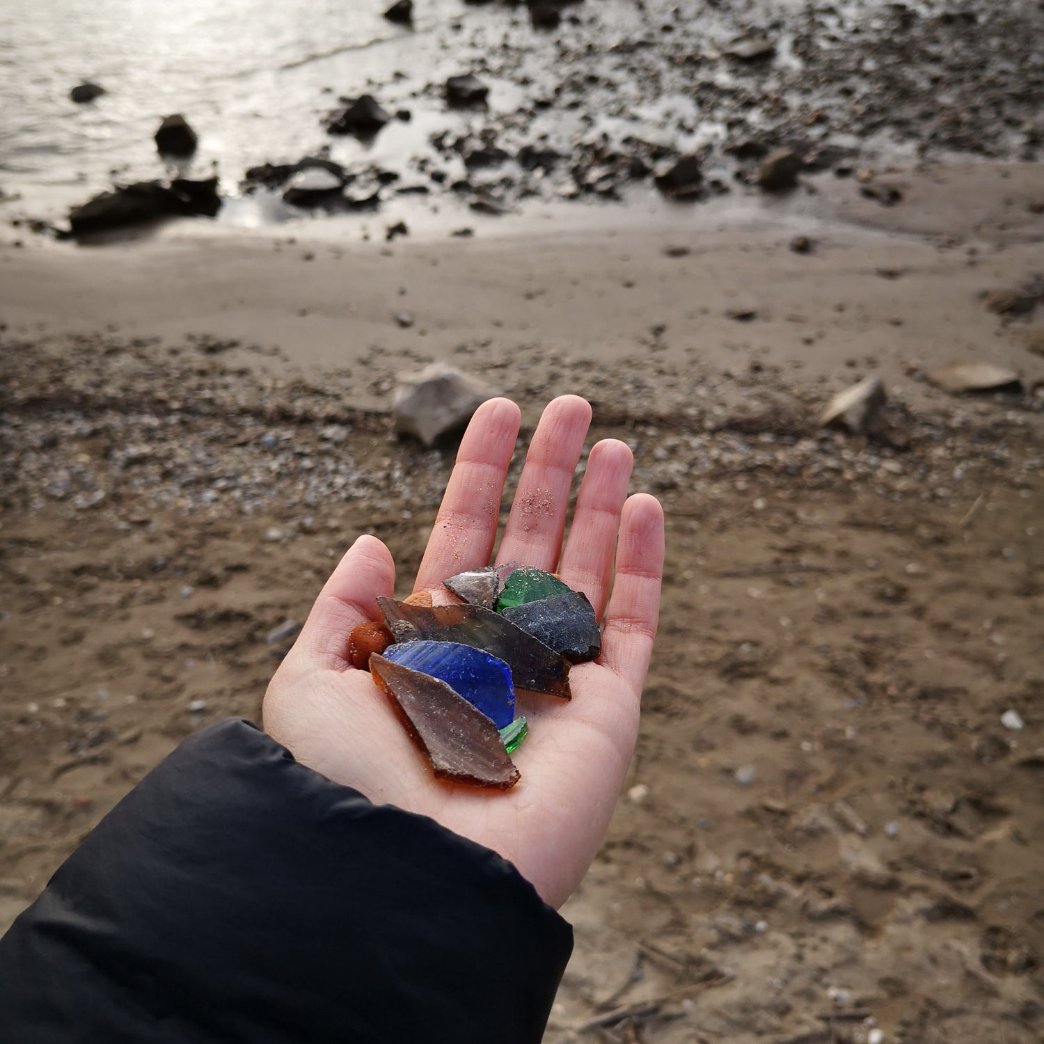 Jede Schale ist ein Uniqat und besteht aus Ton und sorgfältig ausgewählten Steinen und farbigen Glasresten vom Rheinstrand.